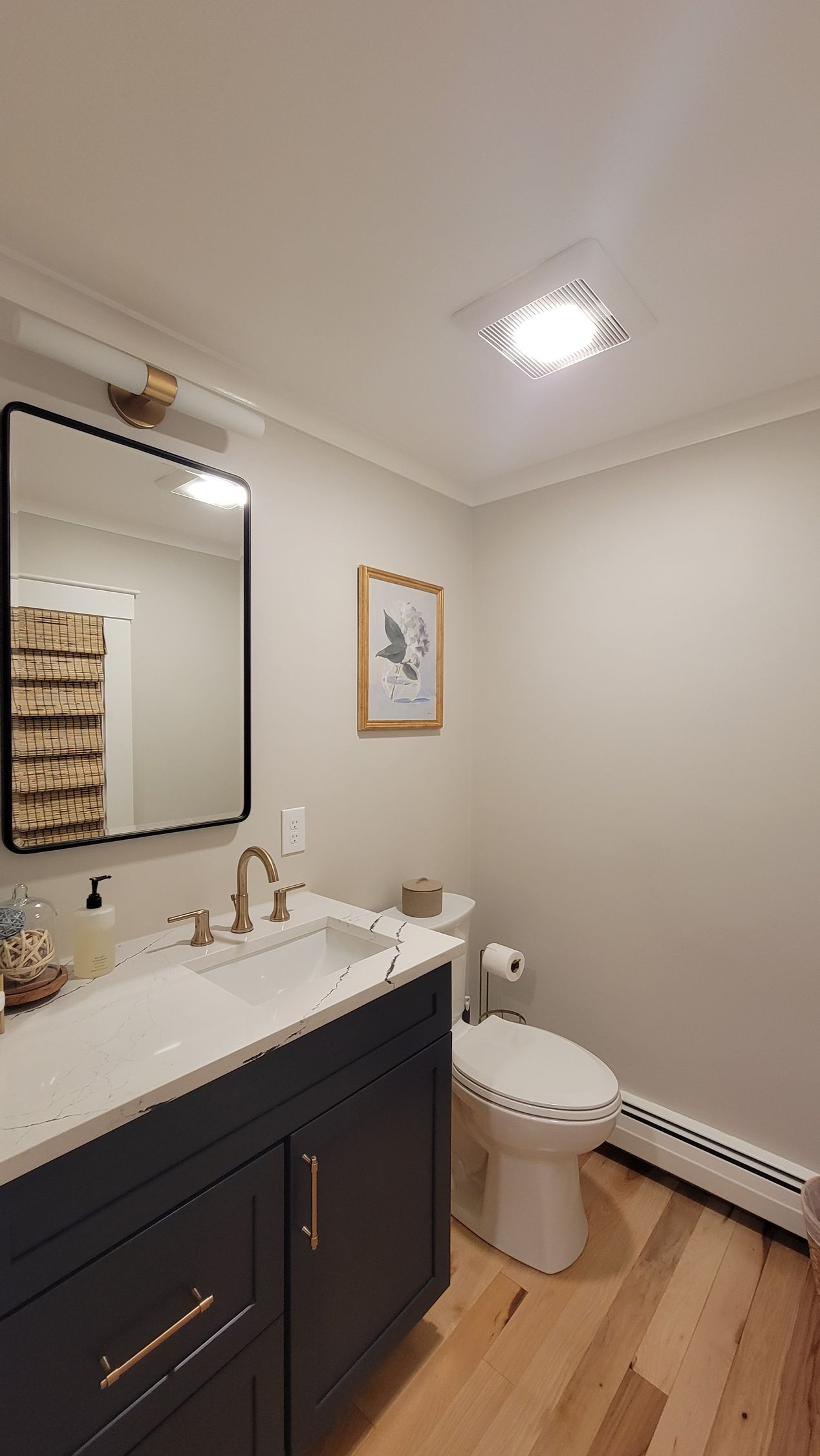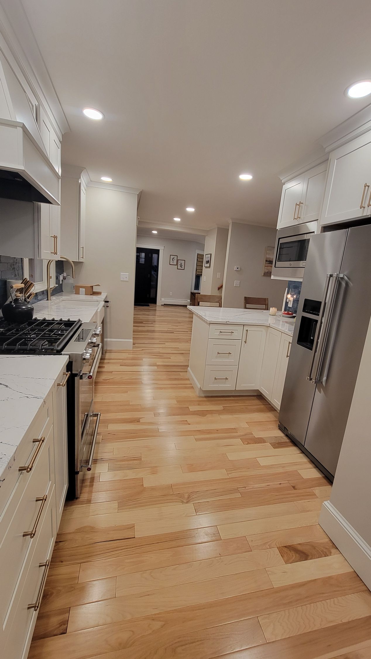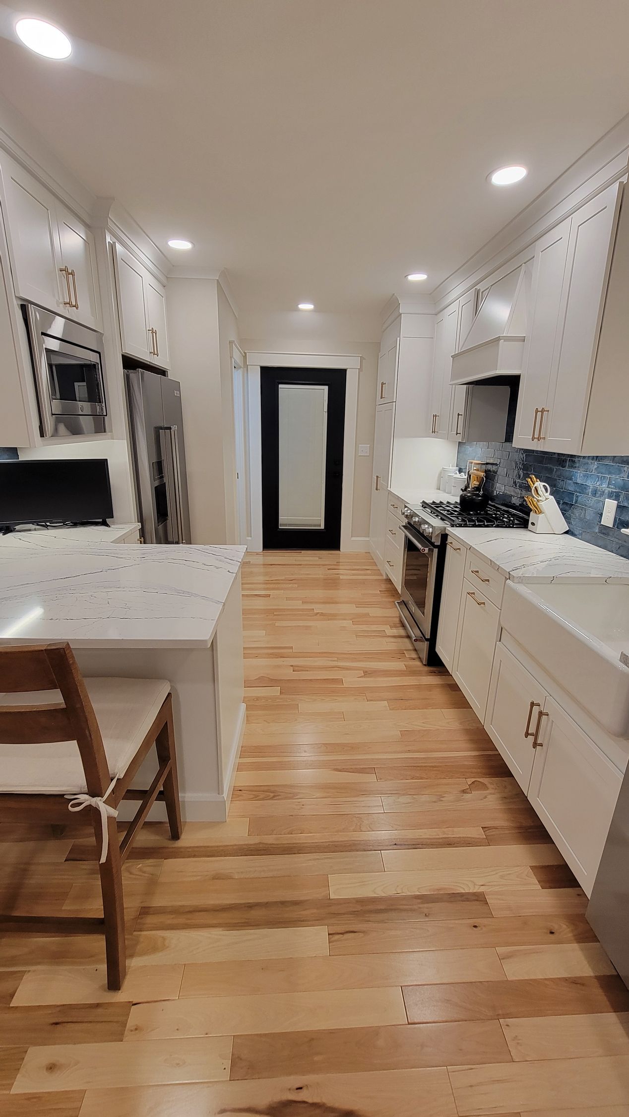The end result was a complete open-concept renovation. With new heating, insulation, doors, and windows, removed first-floor walls, a converted exterior porch into a mudroom, an enlarged kitchen and bathroom, plus a new laundry room, Larry added nearly 200 square feet of functional space without altering the original footprint. The ceilings, walls, and trim were painted to perfection, giving the home a fresh, modern look while still preserving its historical charm.